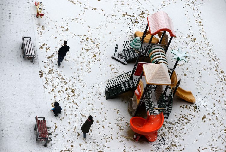 大兴天宫院,儿童游乐区被雪染成白色。