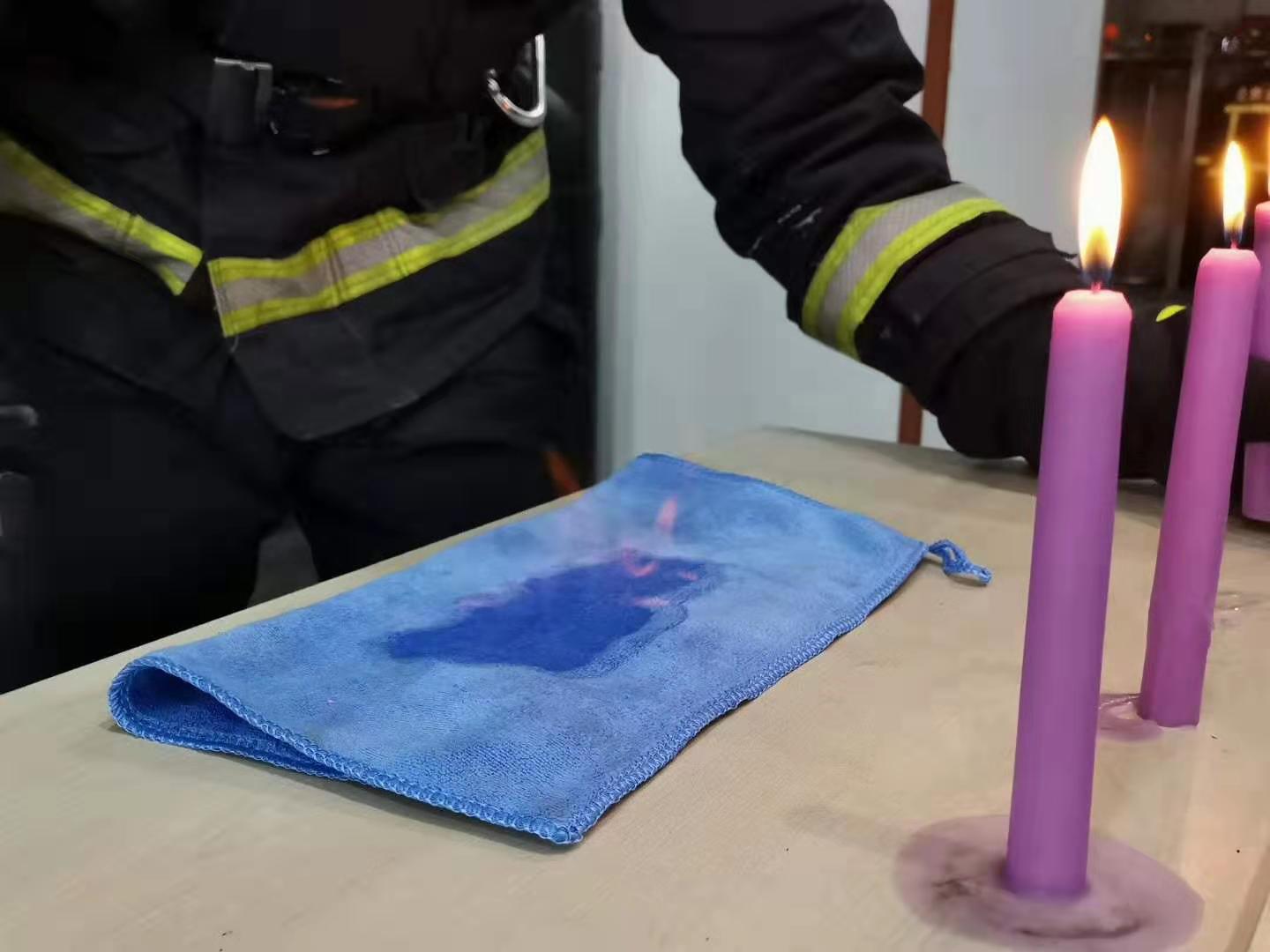 消防员演示高浓度酒精挥发期间遇火自燃。受访者供图