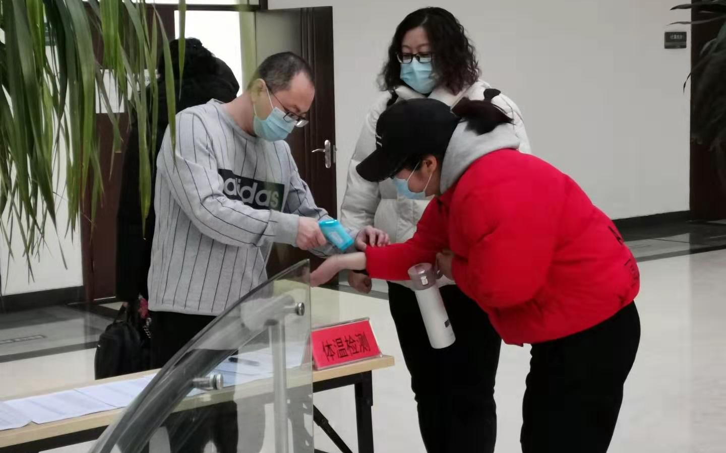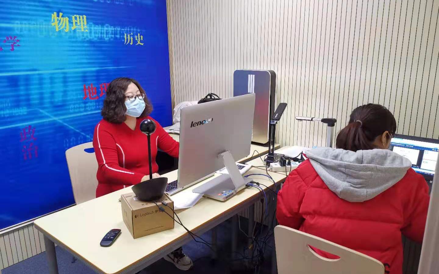 新京报讯(记者 曹晶瑞)测量体温、备课室准备、手部消毒进入直播室、录课直播……经过严密的工作流程,北师大密云实验中学校长张德广、副校长周长富开始了新学期第一课的课堂直播。2月1日起,密云区中学直播课堂寒假直播正式开播,通过“互联网+教育”的模式,助力密云高三学生考前指导以及全体初高中学生在家学习辅导,实现疫情防控期间停课不停学。