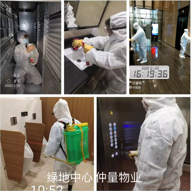 绿地中心物业在进行强化消杀。