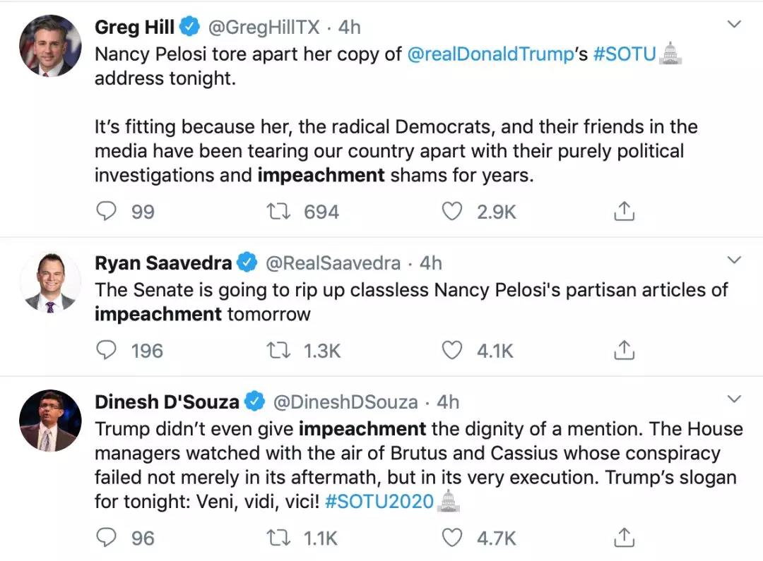 值得关注的是,特朗普在演讲中完全没有提到弹劾案。