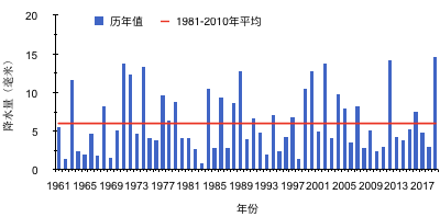 12月1日至次年2月6日华北地区平均降水量历年变化(1961-2019)。中国气象局