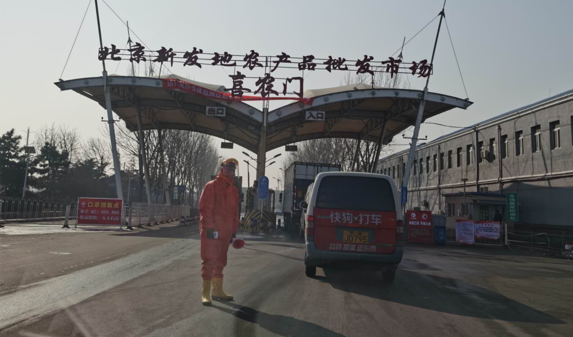 进入新发地的人员需要测温,车辆需要消毒。新京报记者 陈琳 摄