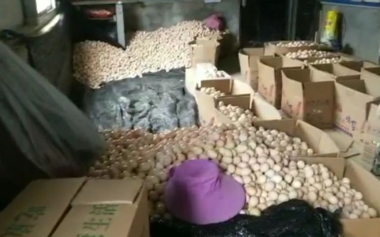 张士义的饲料包装库存不多,而原先他每次送饲料都稍带着送一些鸡蛋的包装,从养殖户手上收来鸡蛋拉回来销售,现在却只能看着养殖户的鸡蛋没有任何防护地堆在地上。