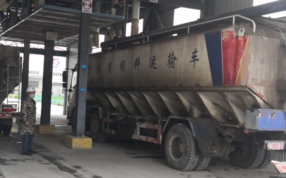 晨科农牧集团的散装饲料车正在作业。受访者供图