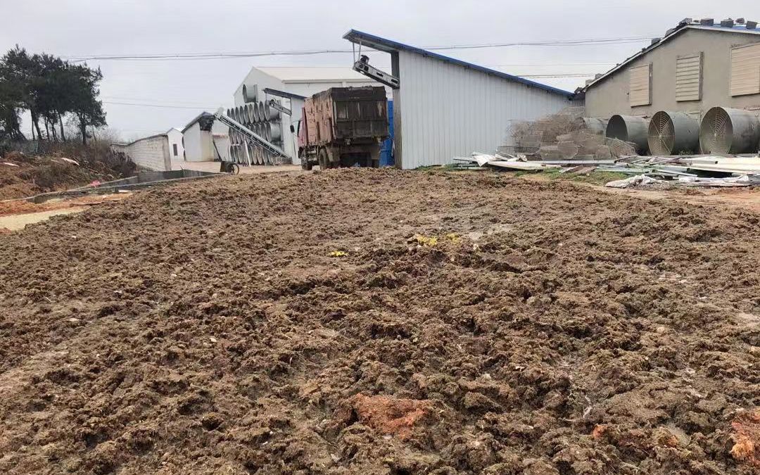 因肥料厂还未复工,养殖户春节以来的鸡粪都堆积在地上。受访者供图