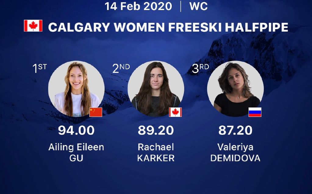 本赛季自由式滑雪U型场地世界杯共有5站,卡尔加里站是收官战。决赛共有8名选手参加,每名选手完成3轮比赛,取其中最高分为最终成绩。