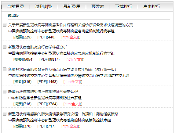 近日,《中华流行病学杂志》网站公布了多篇与新冠肺炎相关的预发表论文。网页截图