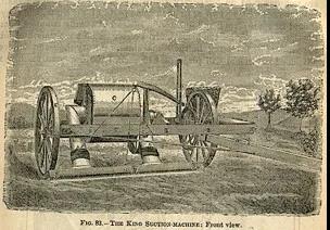 美国上世纪密苏里州的除蝗器具。由两个大锡管组成,锡管连接着每分钟1200转的高速风扇。该设备可以在平坦的农田里很好地工作,唯一的限制是它需要抽水机提供动力,而当粉碎的蝗虫抵达一定数量后,破碎的蝗虫尸体会黏附在筛网上。