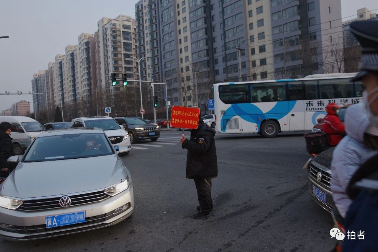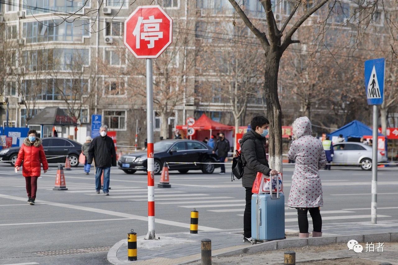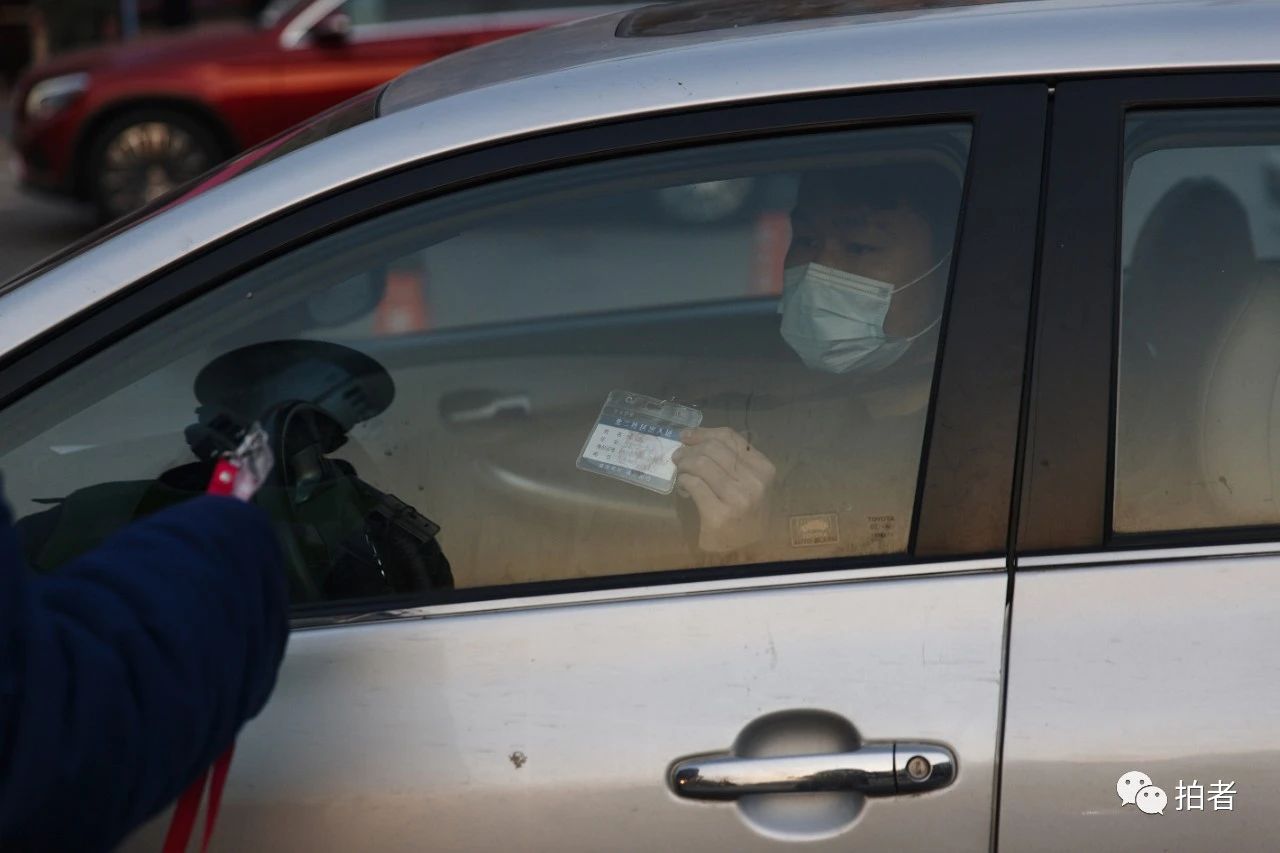 △ 2月19日,天通苑北一区出入口,晚高峰时段,保安举着牌子维持车辆秩序:“请您停车出示人员出入证,请您伸出一只手测体温。”