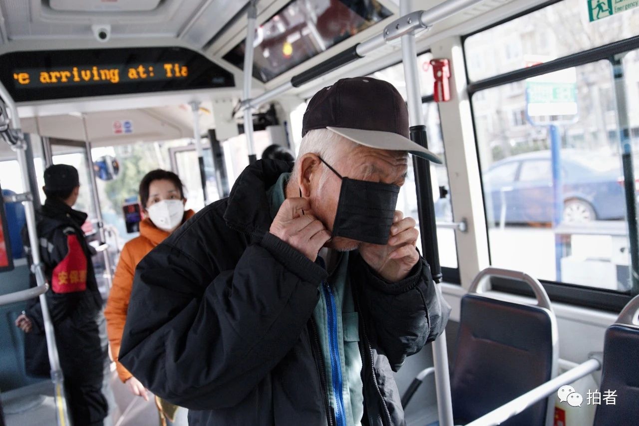 △ 2月18日,天通苑社区,一名刚上751路公交车的市民调整口罩。