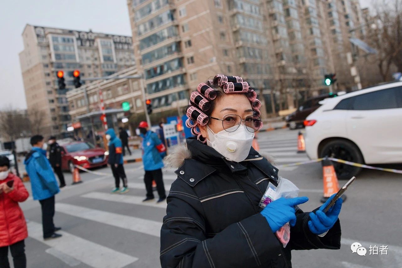 △ 2月18日,天通苑北一区,“全副武装”取快递的居民。