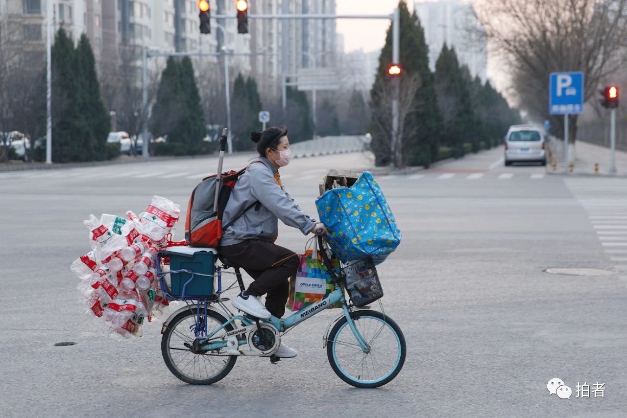 △ 2月19日,天通苑社区立水桥东一路,一名长租公寓保洁员经过十字路口。