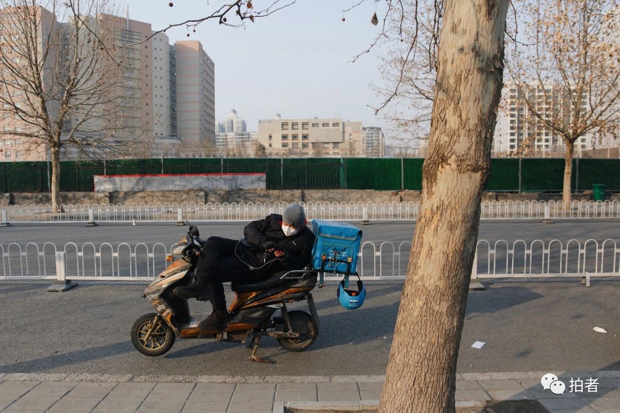 △ 2月19日,天通苑北一区出入口,等待住户出门取餐的外卖员。