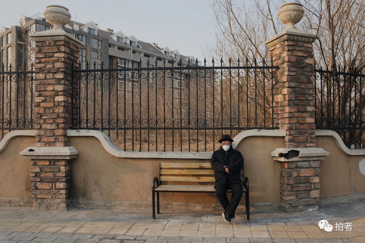 △ 2月19日,天通苑社区太平庄中街,路边戴口罩的老人。