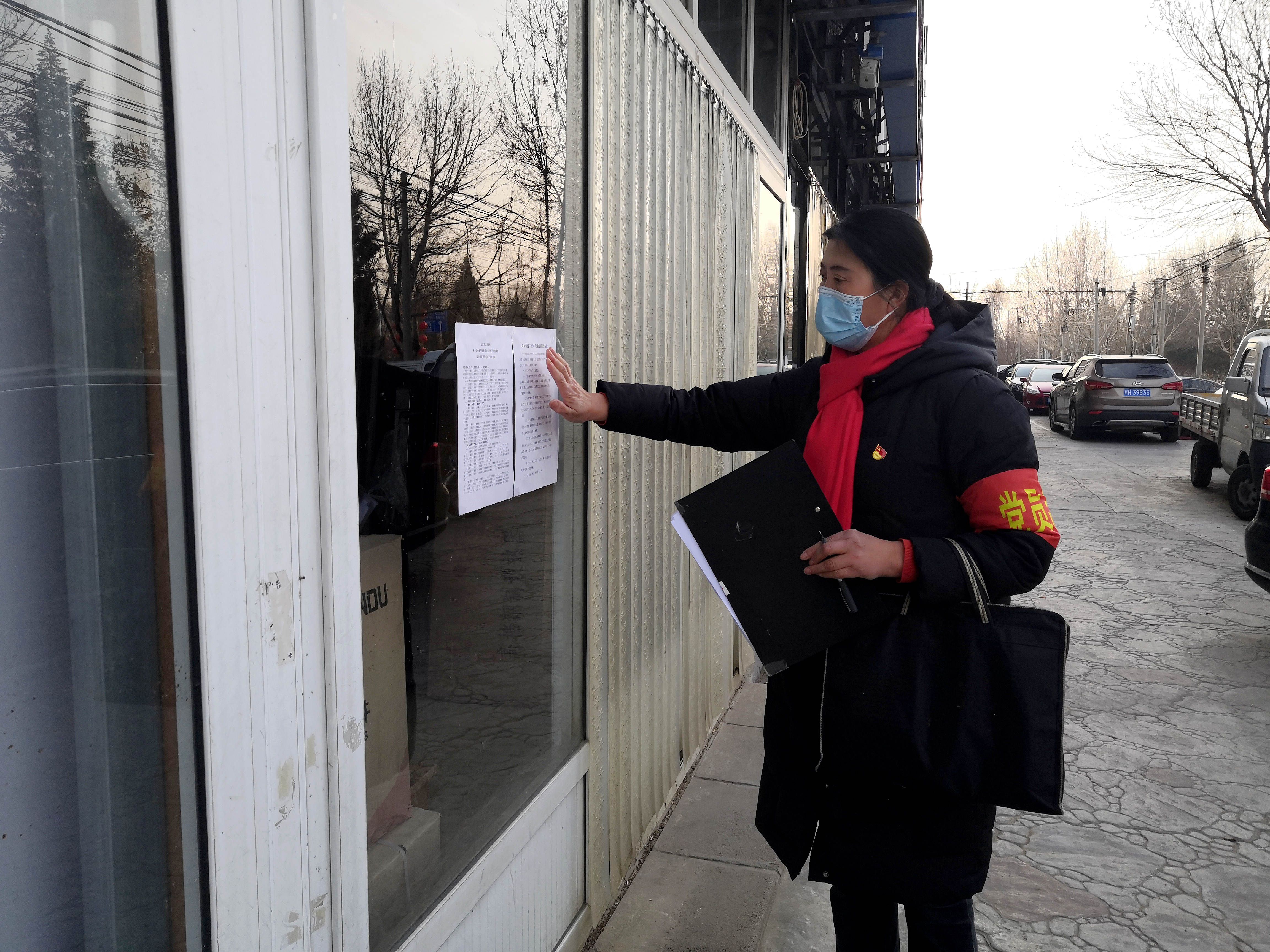 熊玉香在辖区底商张贴疫情防控公告。受访者供图