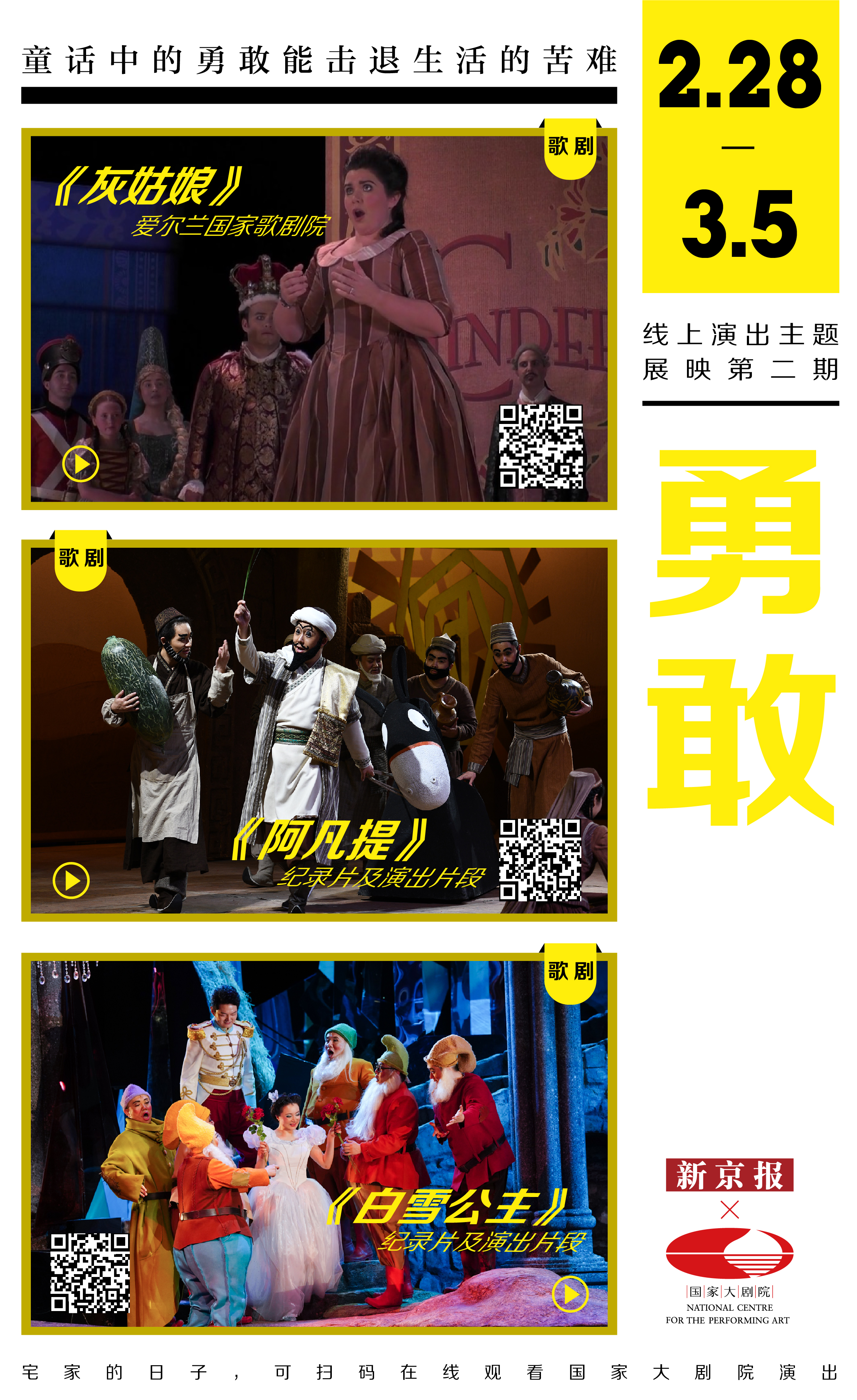 又快到周末了,本期新京报x国家大剧院线上演出主题展映挑选了三部经典童话故事改编的歌剧《灰姑娘》《阿凡提》《白雪公主》,虽然故事是那么的熟悉简单,但精心设计的舞台、音乐唱段的创作,依然能带来新鲜感,那是与童年不一样的温暖的梦。