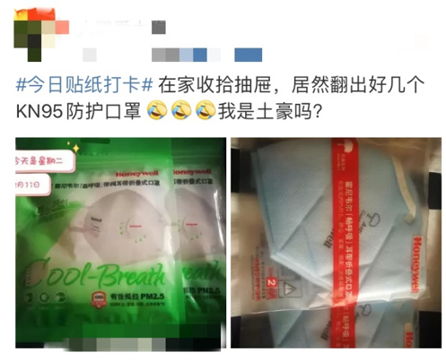 还有不少网友翻出了家里的口罩存货。