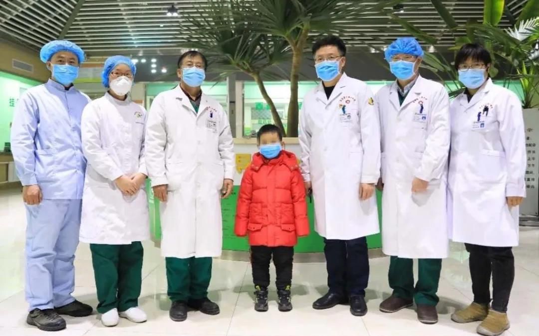 2月19日,6岁男童刘某某在秦皇岛当地治愈出院。图片来源:秦皇岛发布