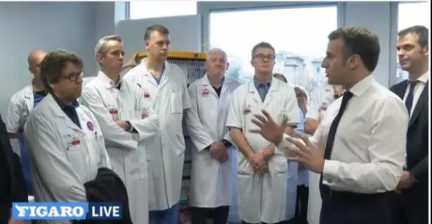 马克龙和一线医生见面。/费加罗报视频截图