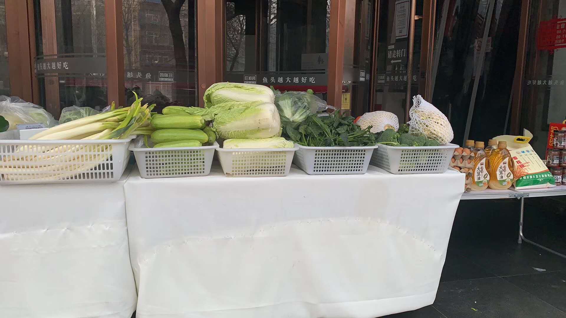 旺顺阁在门店门口“摆摊儿”卖菜。图/资料图片