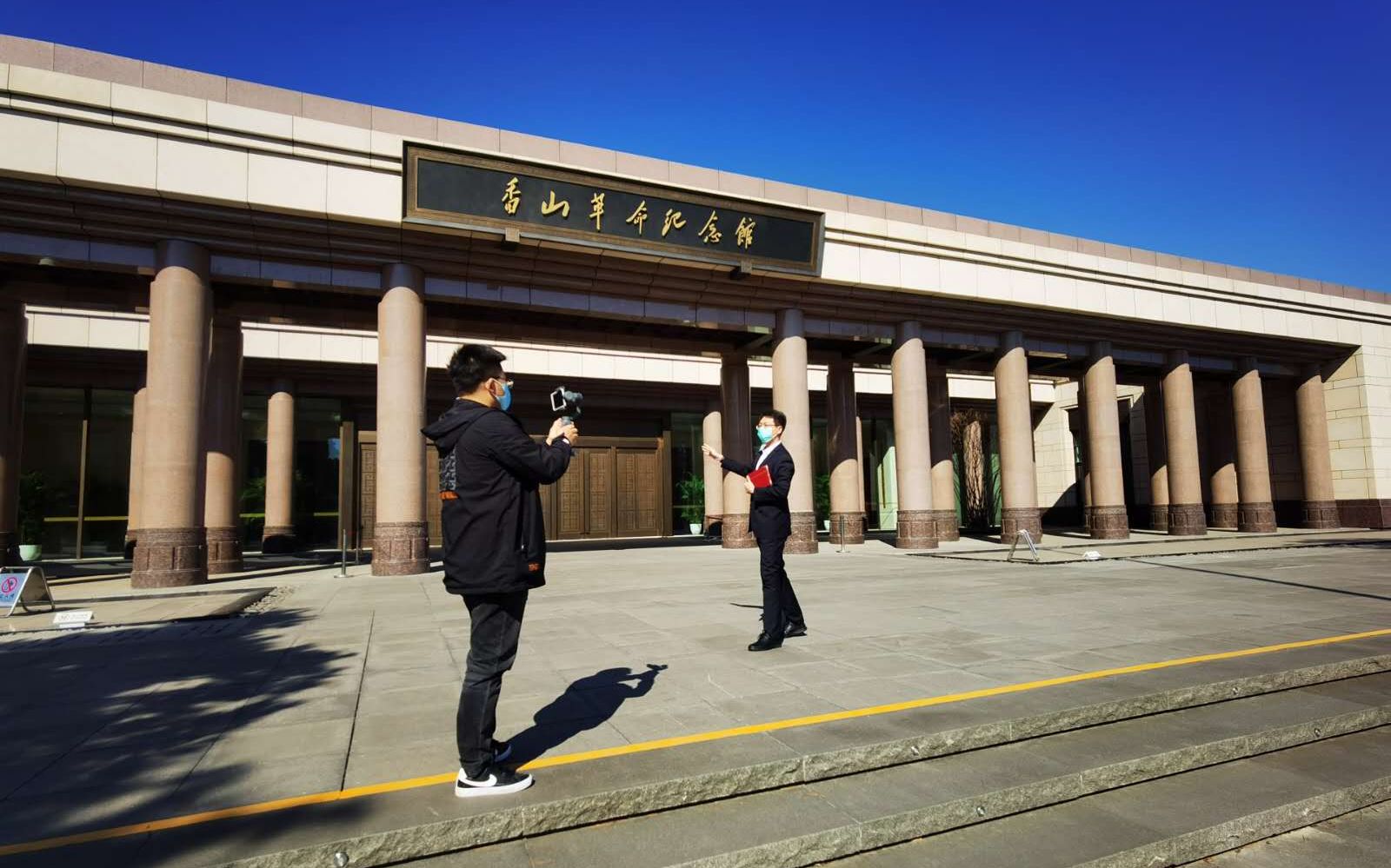 3月4日下午,香山革命纪念馆讲解员孟超和摄像、助教早早来到了场馆外,为即将开展的直播讲解做准备。两点整,学生们都已进入直播间,“云课堂”准时开启。