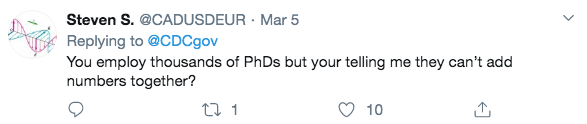 美国网友评论CDC :你们雇用了上千名博士,却来告诉我,他们不能把(各州)数字加起来?推特截图