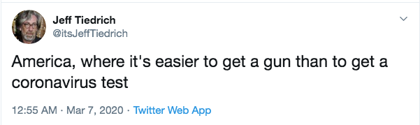 美国网友:在美国,获得一把枪比获得新冠病毒检测更容易。推特截图