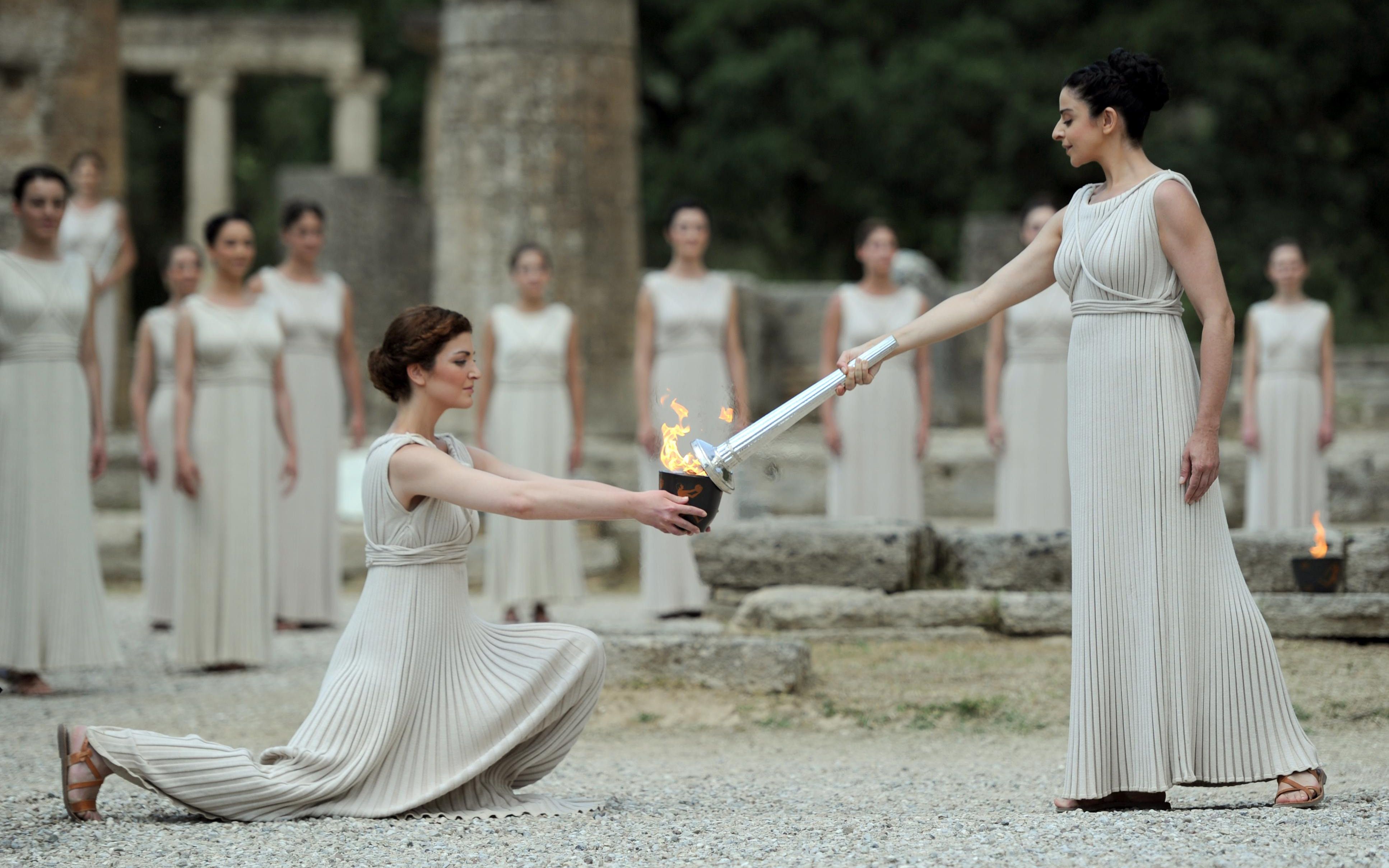 今天的圣火采集仪式共有35位女祭司参加,最高女祭司由希腊著名演员珊提·格奥尔吉乌担任。2019年9月17日,瑞士洛桑青奥会圣火采集仪式,最高女祭司扮演者也是珊提·格奥尔吉乌。