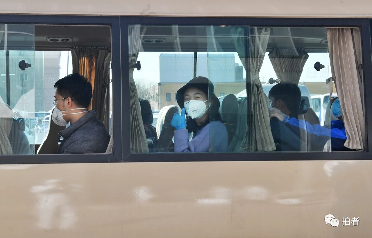 △ 3月17日,新国展集散点,转运车辆上,一名旅客伸出赞赏的大拇指。
