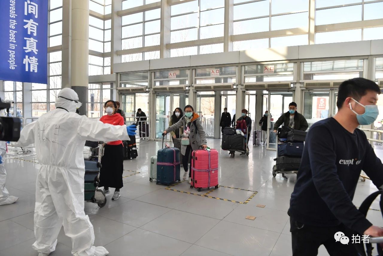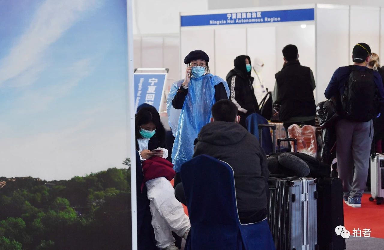 在山东省旅客登记处,从法国抵京的旅客刘小姐正把头靠在椅背上休息。虽然已经下飞机一段时间了,但是为了做好个人防护,刘小姐依然穿着防护服,外套一件黑色羽绒服,严严实实地戴着口罩,而这样的“装备”她在飞机上穿了一路。