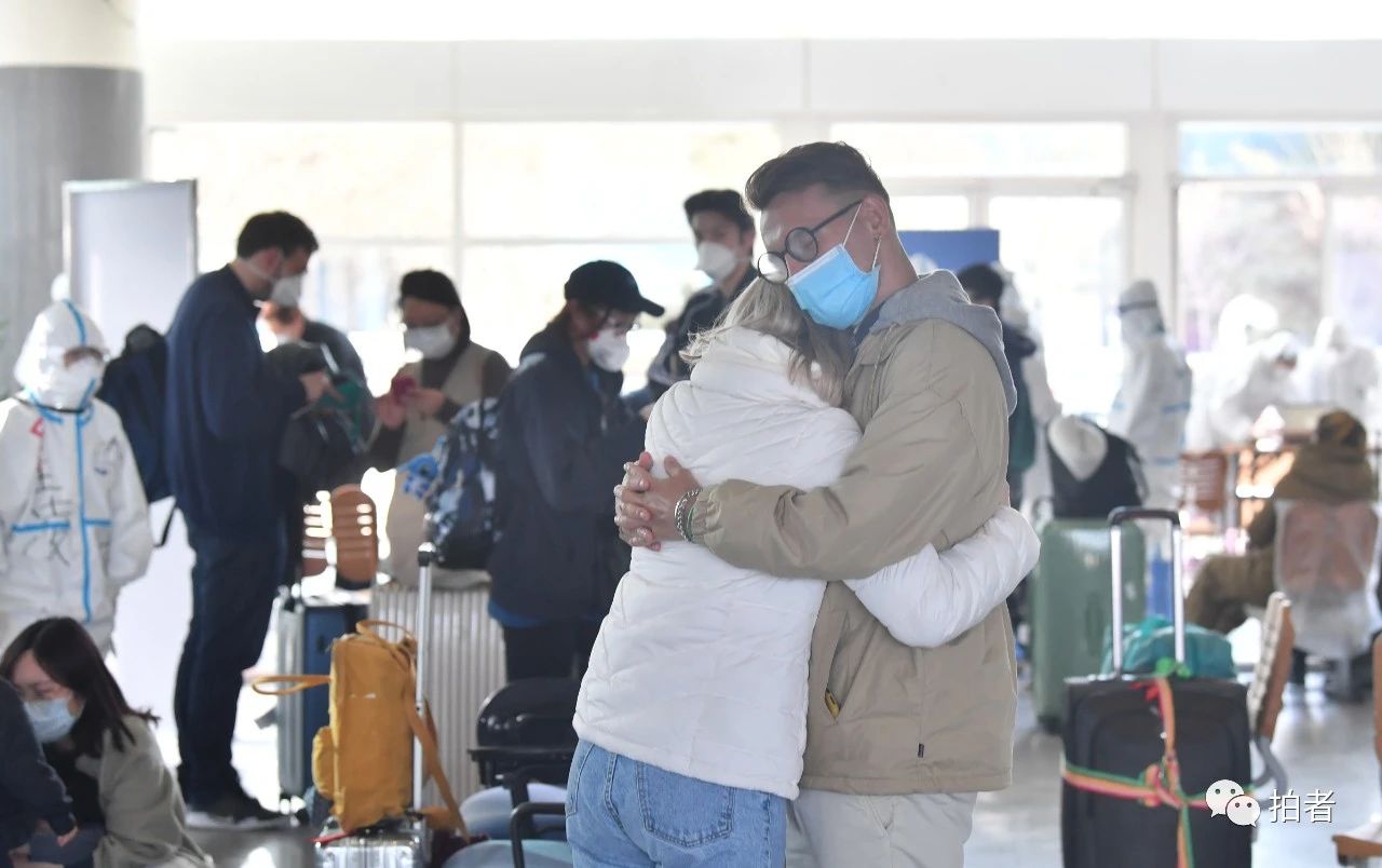 △ 3月17日,新国展北京市东城区集散点,两名外籍旅客紧紧相拥。