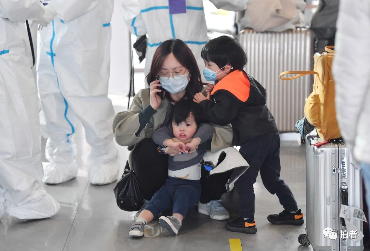 △ 3月17日,新国展北京市东城区集散点,等待登记的一家人。