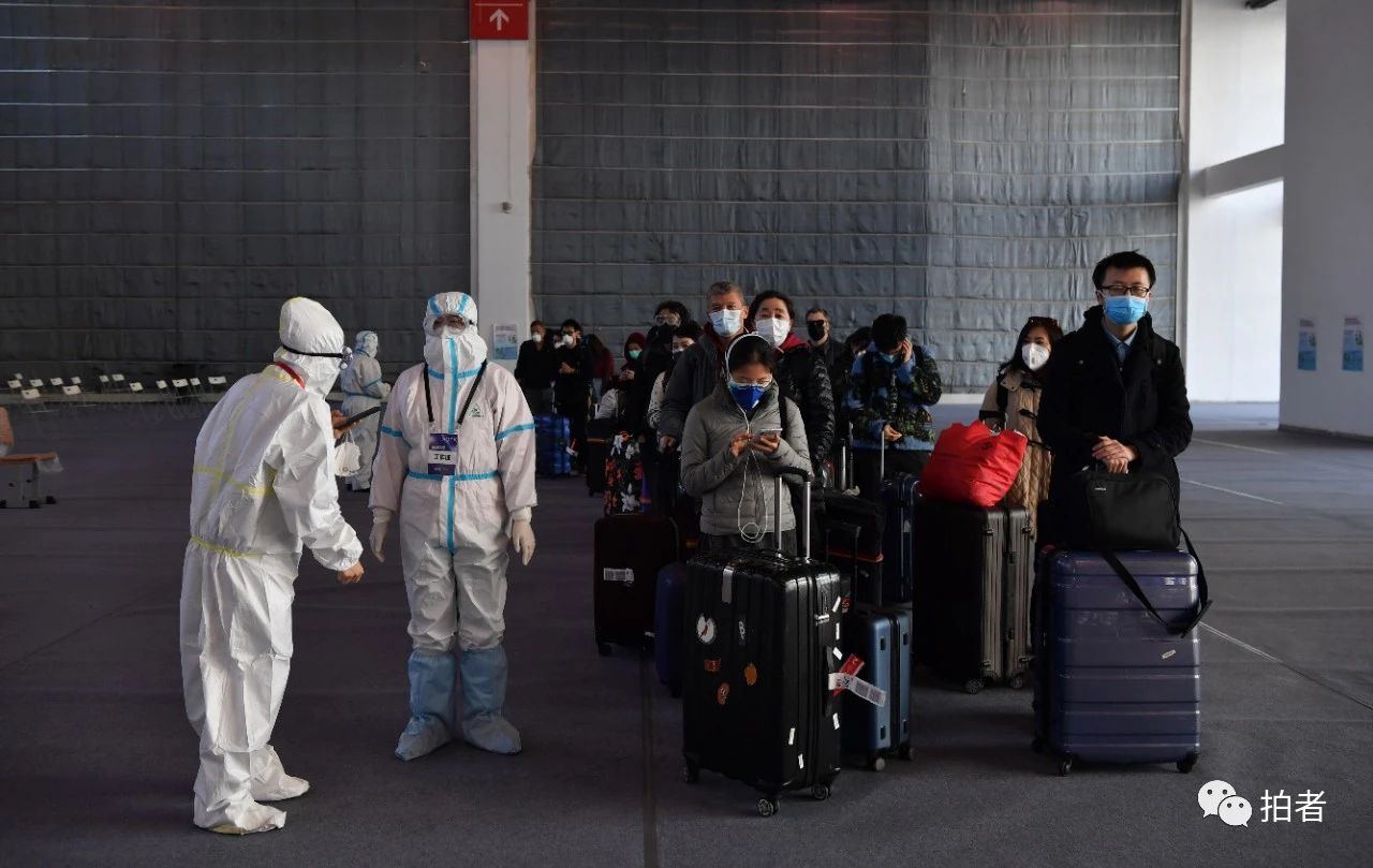 △ 3月17日,入境旅客准备离开新国展集散点,前往隔离点。