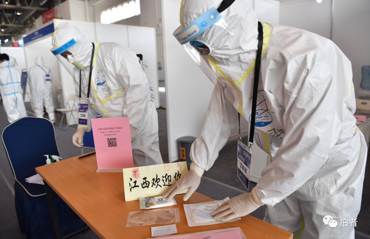 这类暖心陪同服务不仅仅出现在新国展,其实从旅客抵达北京开始,陪同服务就已经开始了。旅客王小姐从巴黎飞抵北京,她告诉记者;“从下飞机到填写健康申明表,再到过边检、过海关、上大巴车抵达新国展,一路上都有工作人员陪我们办理手续……从飞机落地北京到乘坐大巴车抵达新国展,我就用了大约3小时,速度挺快的。”