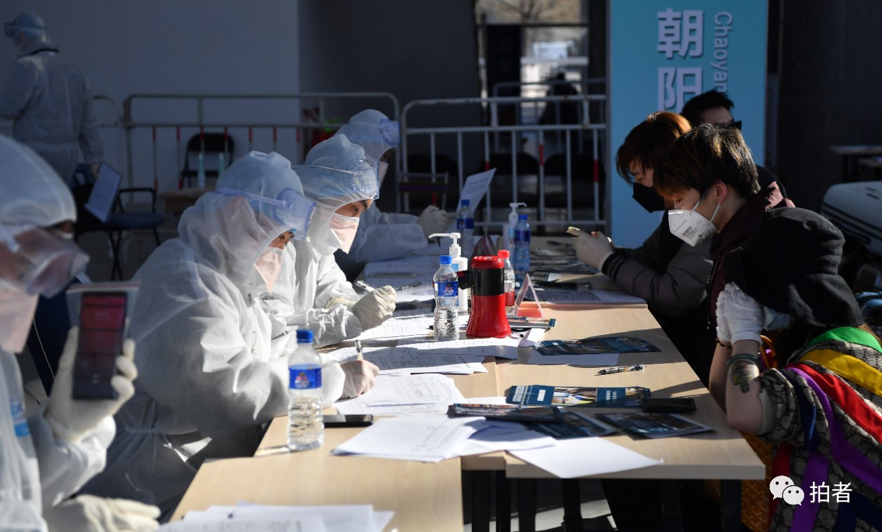 △ 3月17日,新国展北京市朝阳区集散点,入境旅客填写个人信息。