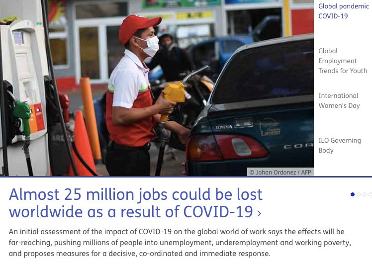 全球2500万人可能失业。/国际劳工组织网站截图