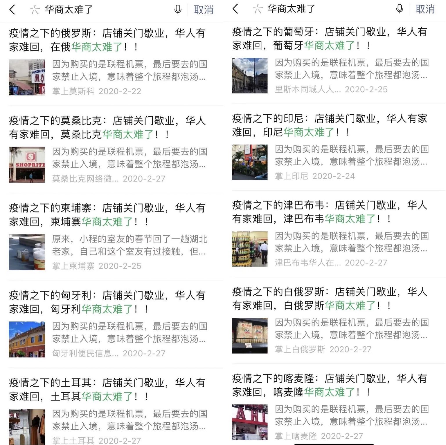 “华商太难”文章刷屏,被质疑系批量生产,制造海外疫情恐慌情绪。 微信公众号文章截图