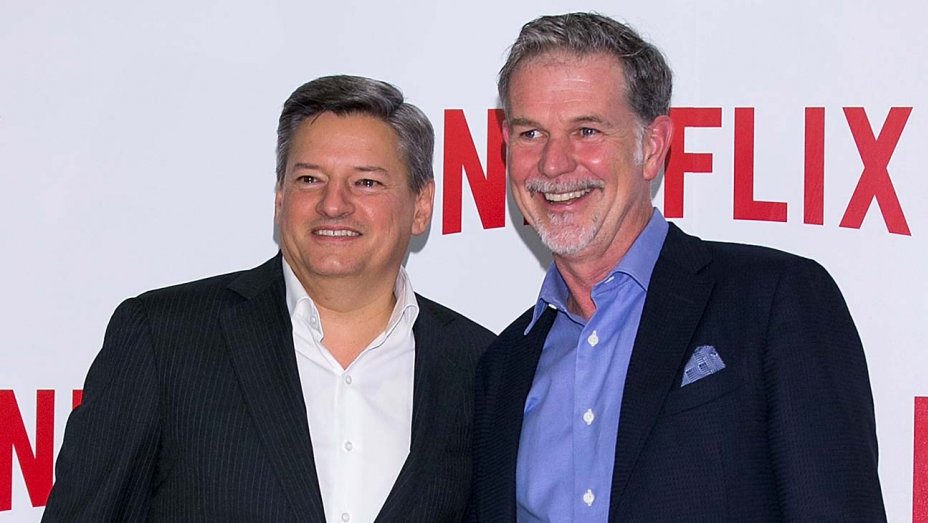 Netflix首席内容官泰德·萨兰多斯、首席执行官里德·哈斯廷斯。