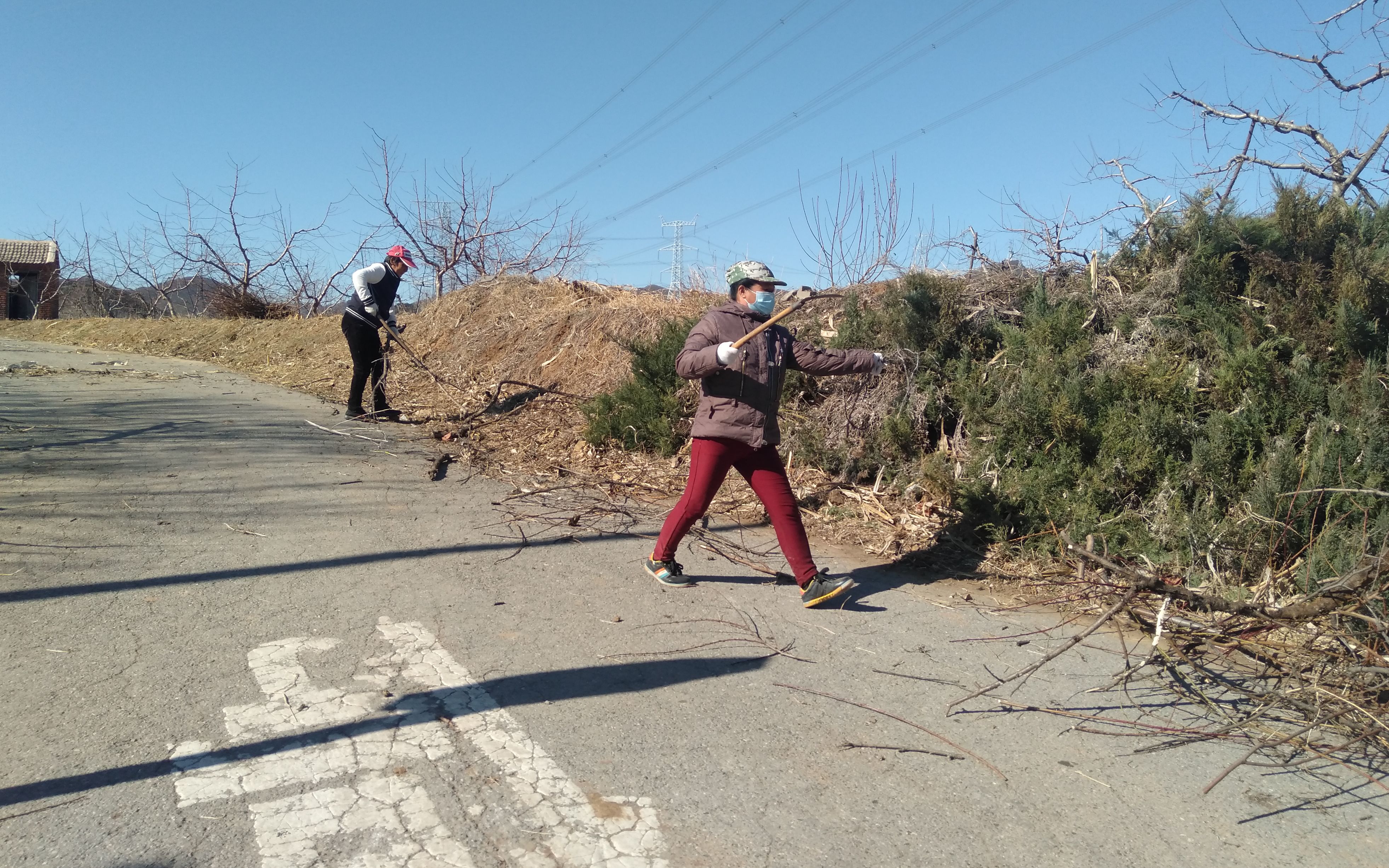 峪口镇工作人员清理路边杂草、树枝,清除火灾隐患。平谷区融媒体中心供图