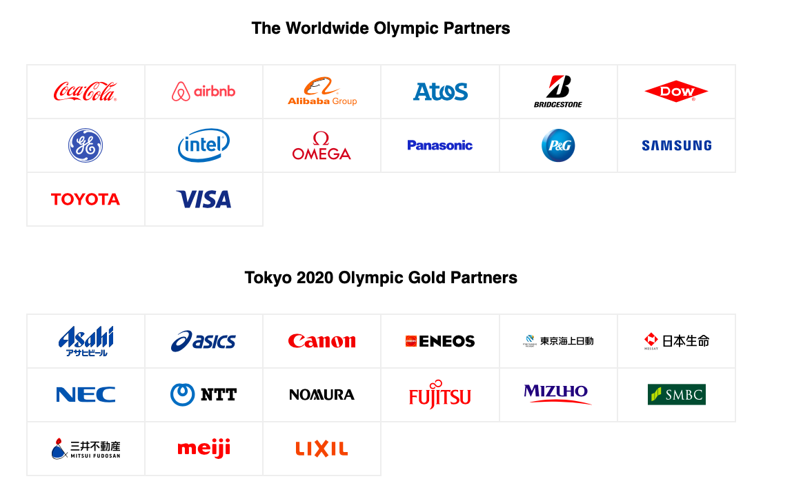 与前面提到的66家日本国内赞助商的模式不同,14家全球合作伙伴是与国际奥委会直接合作,目前的合作周期为2020年奥运会、2022年冬奥会、2024年奥运会和2026年冬奥会。据报道,以上14家全球合作伙伴每年要向国际奥委会支付10亿美元左右。