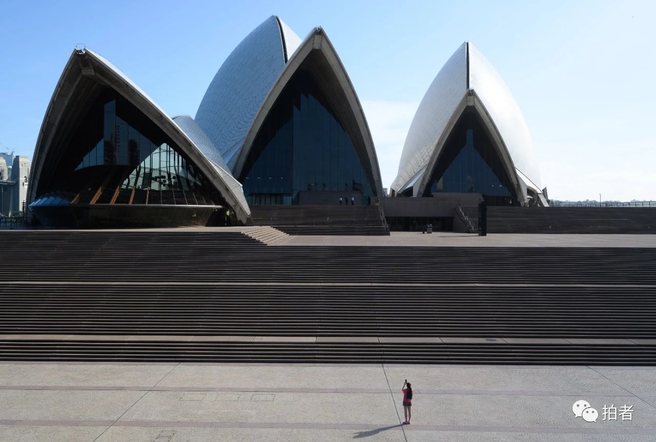 △ 当地时间3月21日,澳大利亚悉尼歌剧院前人烟稀少,只有一名女士在拍照。