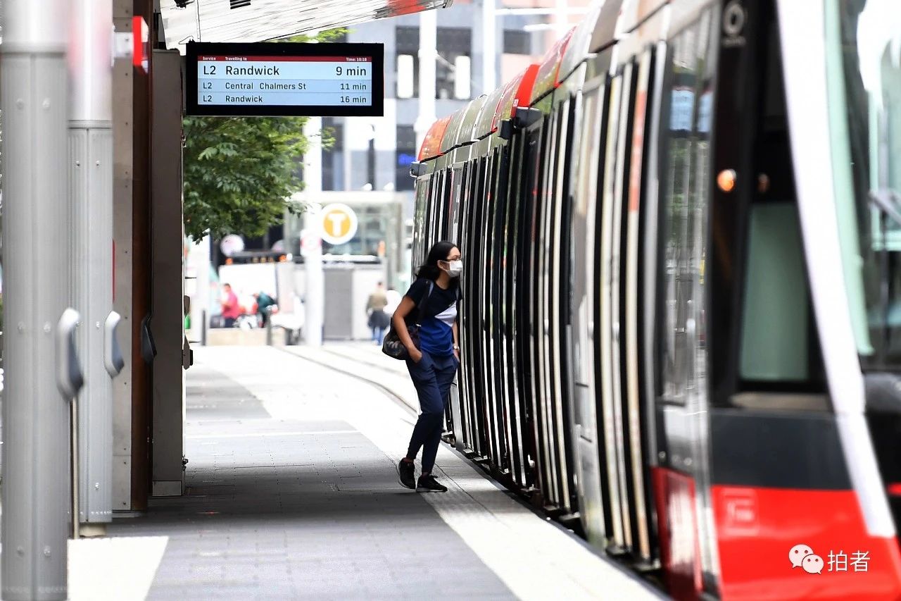 △ 当地时间3月26日,澳大利亚悉尼,一名女子在近乎无人的乔治大街上登上一辆轻轨车。