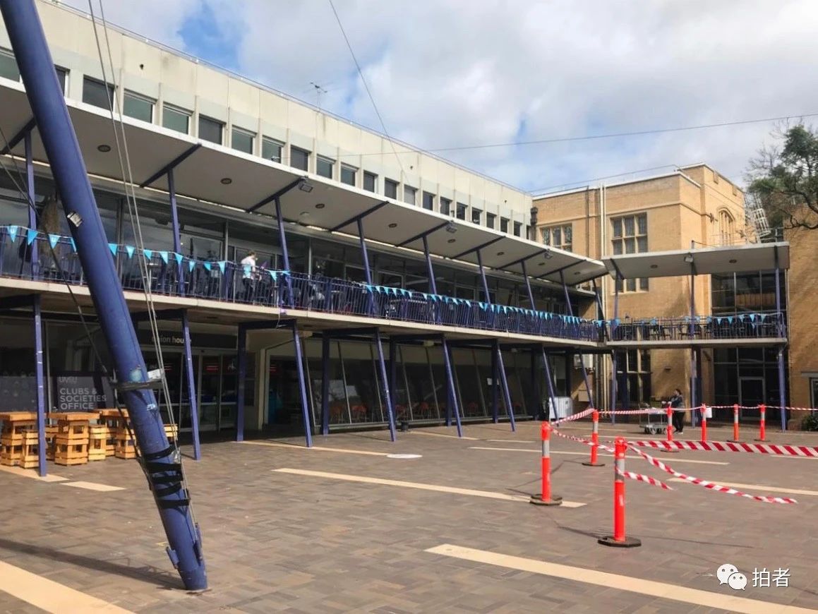 △ 当地时间3月20日,墨尔本大学Union House门前,以往每天中午都会有学生社团演出,现在却十分冷清。摄影:柯伟林