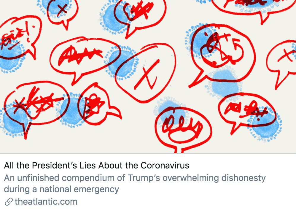 据《大西洋月刊》报道,自特朗普宣布美国进入“国家紧急状态”以来,他多次在这起“百年不遇的危机事件中撒谎”。《大西洋月刊》指出,特朗普没有真正地了解美国疫情。