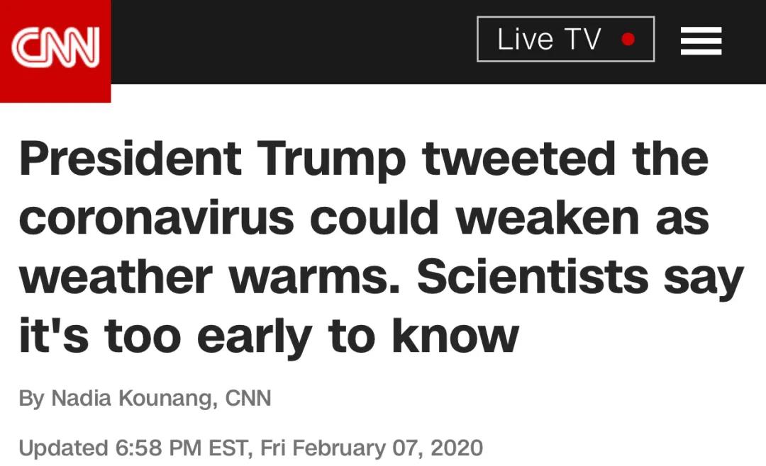 据《大西洋月刊》报道,特朗普并不了解新冠病毒的性质。2月7日和2月19日,特朗普曾多次声称在天气逐渐变暖的情况下,新冠病毒的传染性将会降低。然而事实是,现在判断新冠病毒的传播是否与温度有关还为时过早,这种病毒很可能是季节性的。世卫组织此前表示,新冠病毒可以在所有地区传播,包括天气湿热的地区。