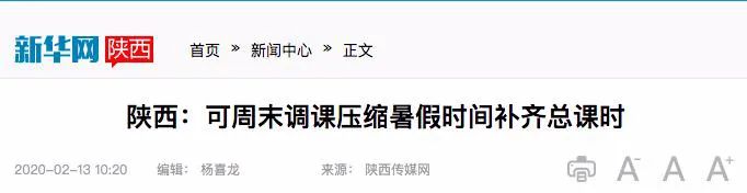 早在2月11日,陕西省就在肺炎疫情防控工作情况第十场新闻发布会上表示:“各地各校后续可采取周末调课、压缩暑假时间等方式补齐总课时。”
