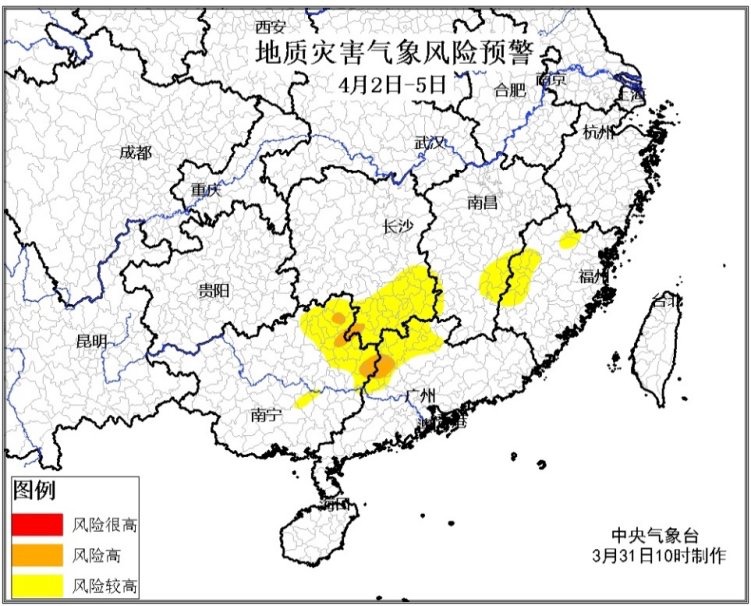4月2日-5日地质灾害气象风险预警。图片来自中央气象台