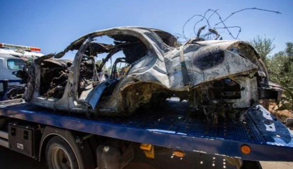 雷耶斯所乘轿车残骸照片传出。图/社交媒体