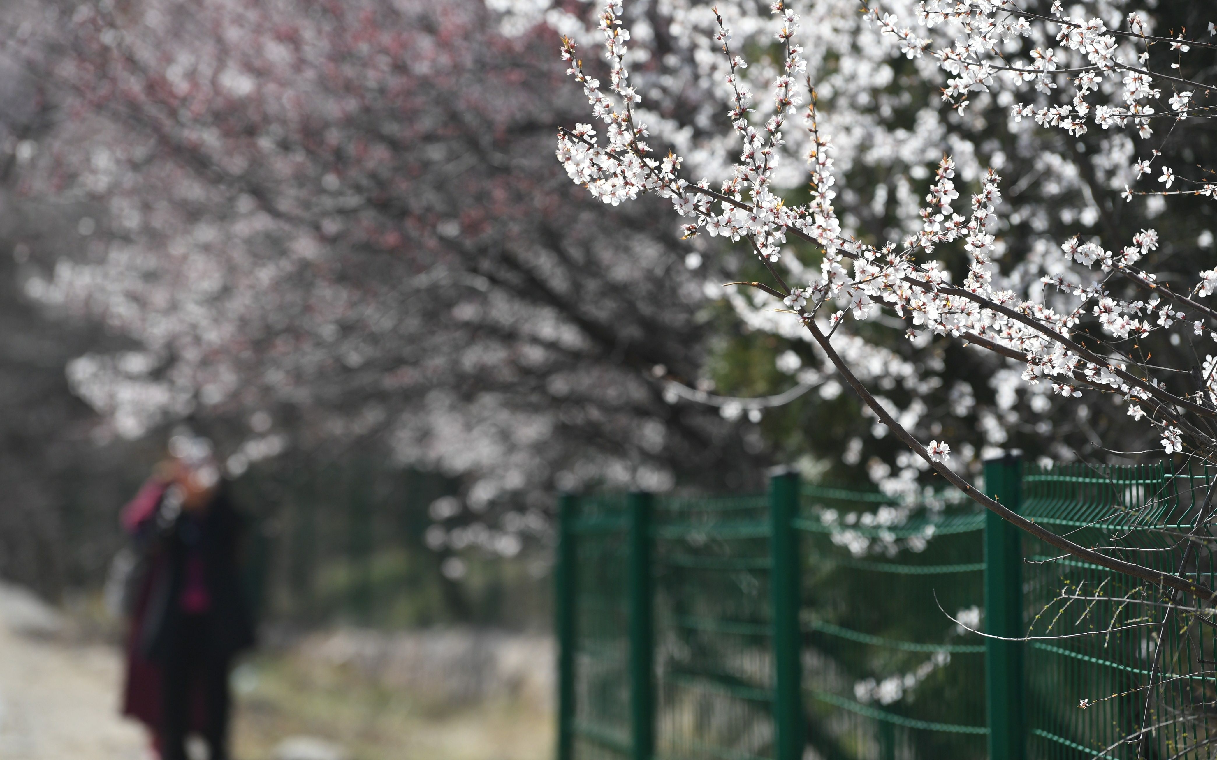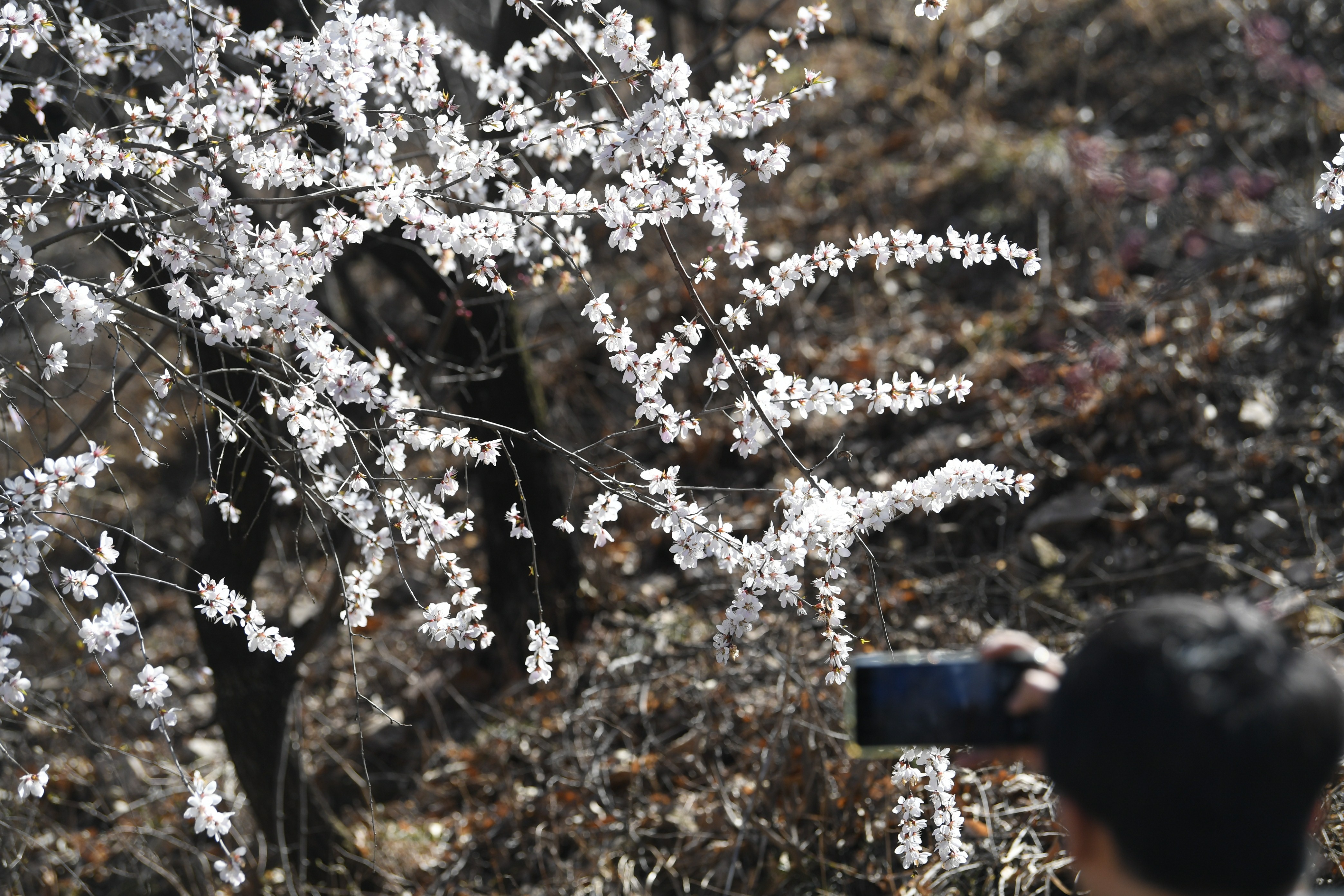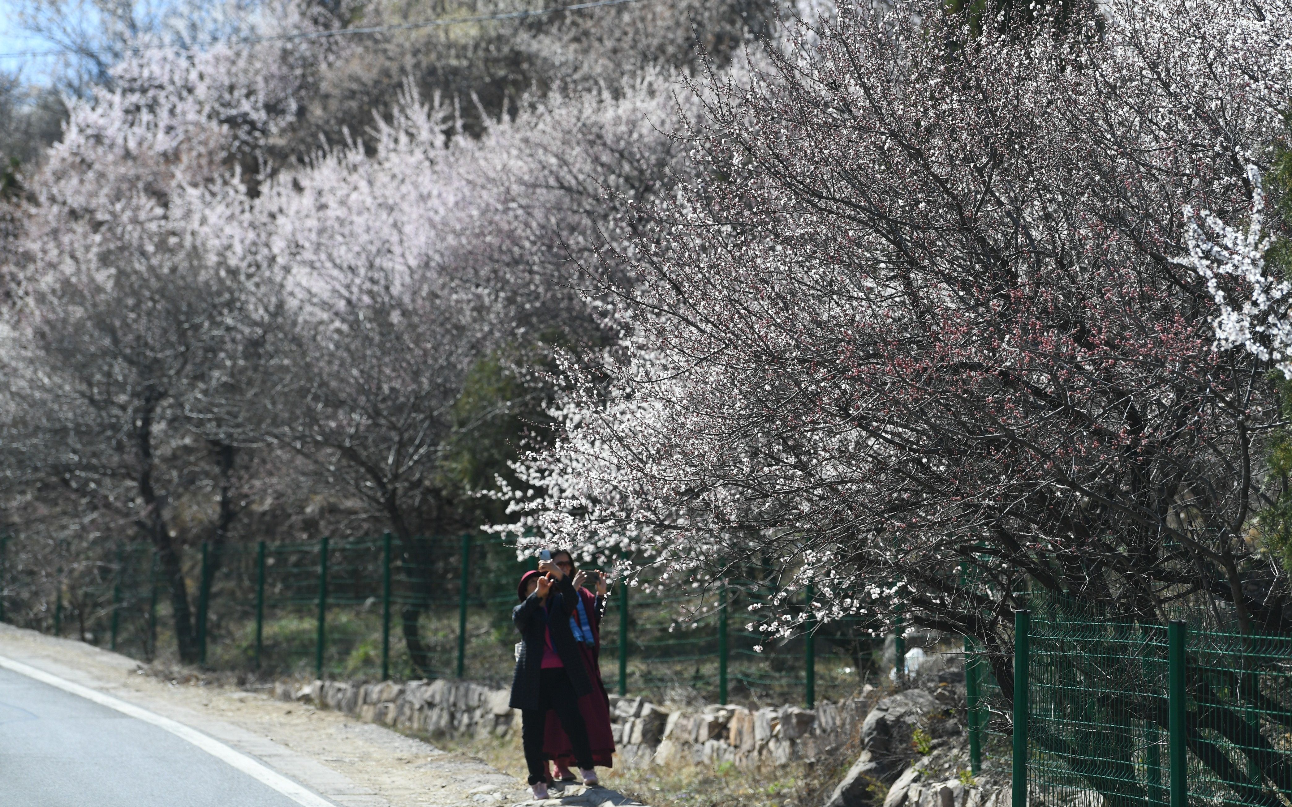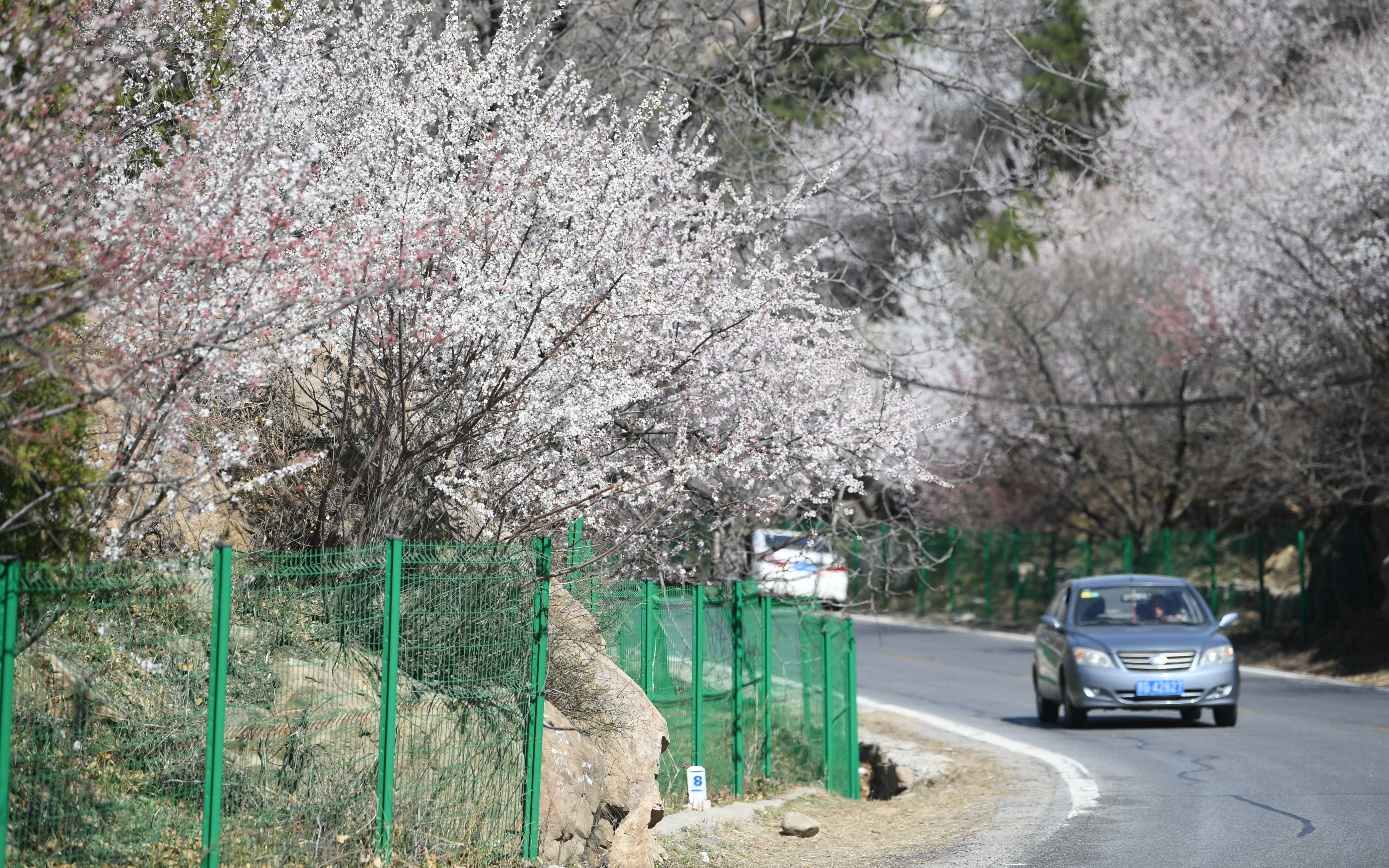 新京报讯(记者 周怀宗 王颖)在北京昌平区延寿镇,一条蜿蜒盘旋的山路两侧,满山遍野的野生杏花、桃花、梨花正处在开放季节。